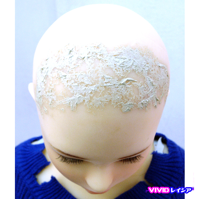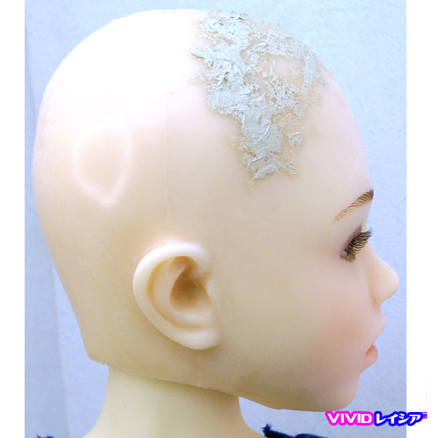 ・両耳後ろに割れ、前頭部にゴム状のも物の接着、後頭部右下に削れが見られます。