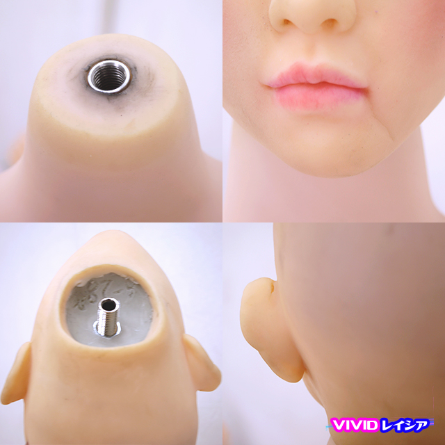 ・後頭部に色移り、右肩後ろにクボミ、胸、右側頭部、左口下に型付、ボディ側ジョイント部に変色が見られます。
